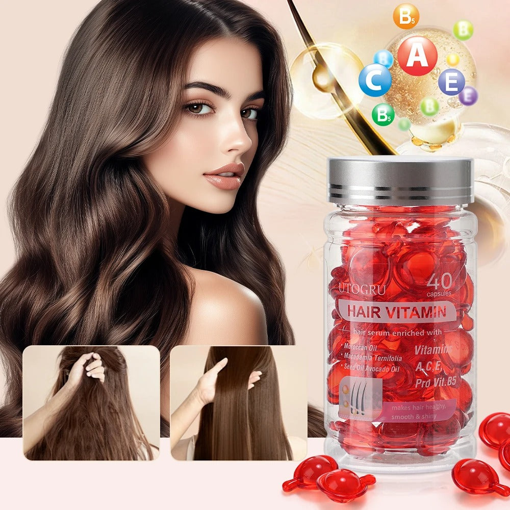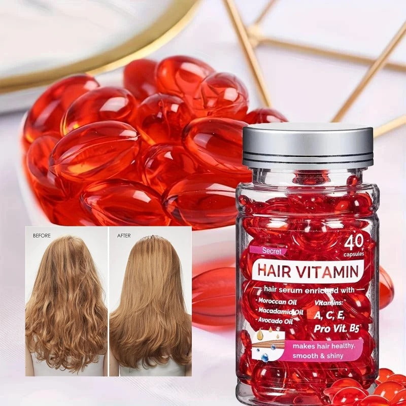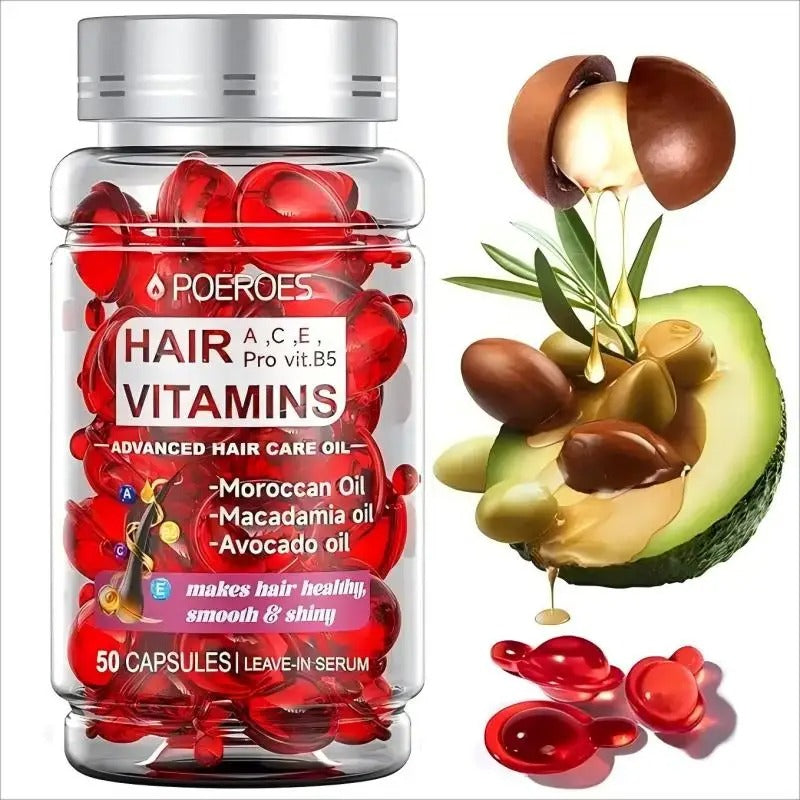 كبسولات الشعر بالفيتامينات و الزيت المغربي – الحل الفاخر لشعر صحي، ناعم، وخالٍ من التجعد